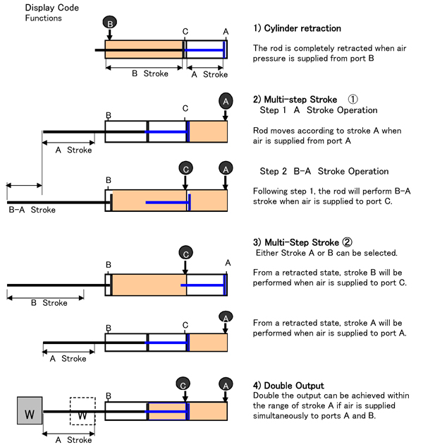 Basic Condition ②・・The range in which double output can be achieved is within the A (rear cylinder) stroke.