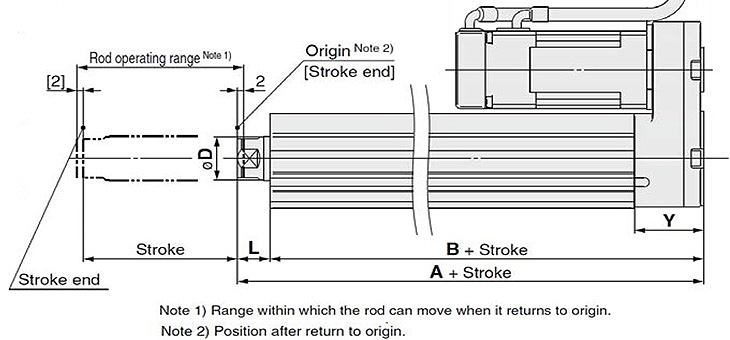 ① Rod or slider moves to the mechanical end ⇒ ② Controller detects motor cannot rotate any longer. ⇒ ③ Controller judges the mechanical end is reached. ⇒ ④ Actuator returns by a set distance specific to each model ⇒ ⑤ Position data is set to zero in the controller. ⇒ ⑥ Return to origin completed, SETON output switches ON.