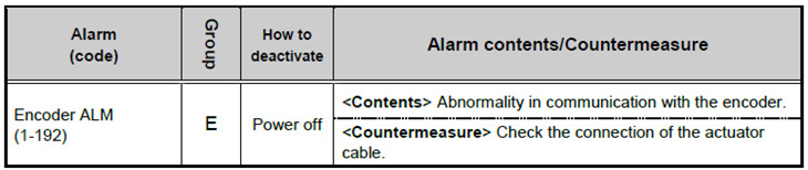This occurs when there was an error in communication with the encoder. The actuator cable may not have been connected properly.