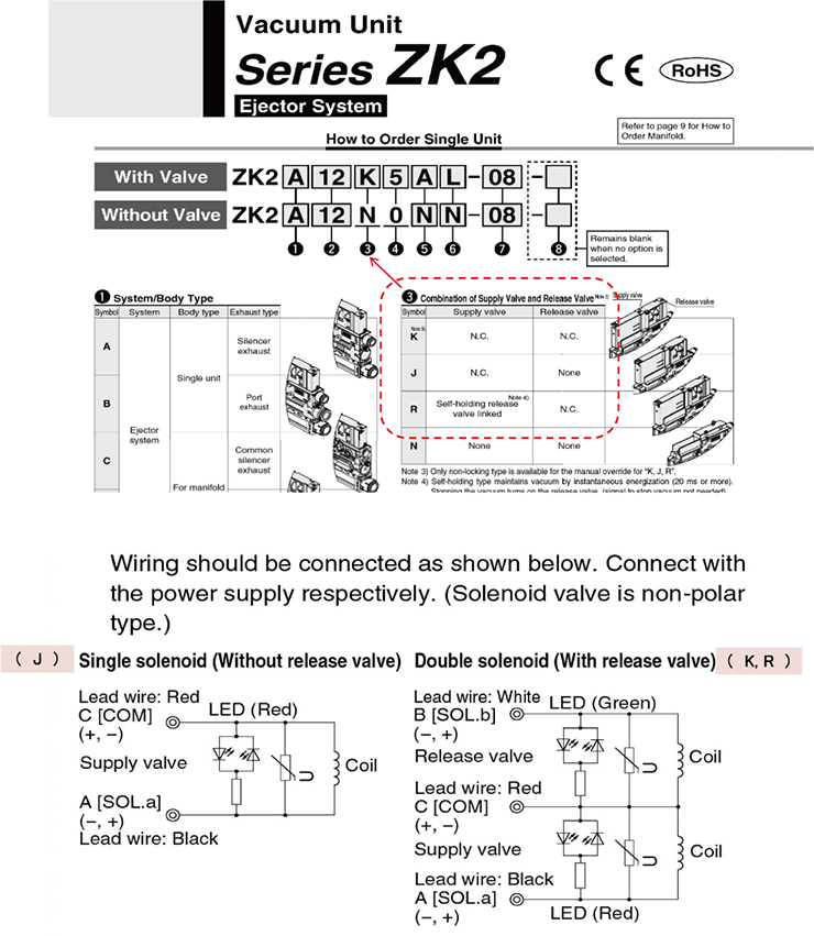 I want to know how to wire the supply valve and the release valve of the ZK2 series.