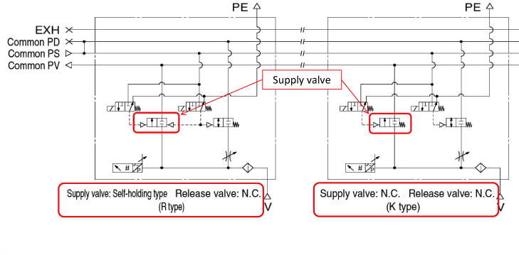 ∗The energization of the pilot valve for supply can be realized by either instantaneous energization or continuous energization. In the case where it is used under continuous energization, when turning the pilot valve for release ON, be sure to set the pilot valve for supply to OFF at the same time. Failure to do this will cause a malfunction such as the inability of the release valve to function normally, or the inability of the supply valve to go OFF.
