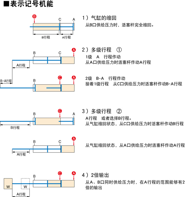基本条件②・・2倍的输出范围是 A(后侧气缸)的行程范围