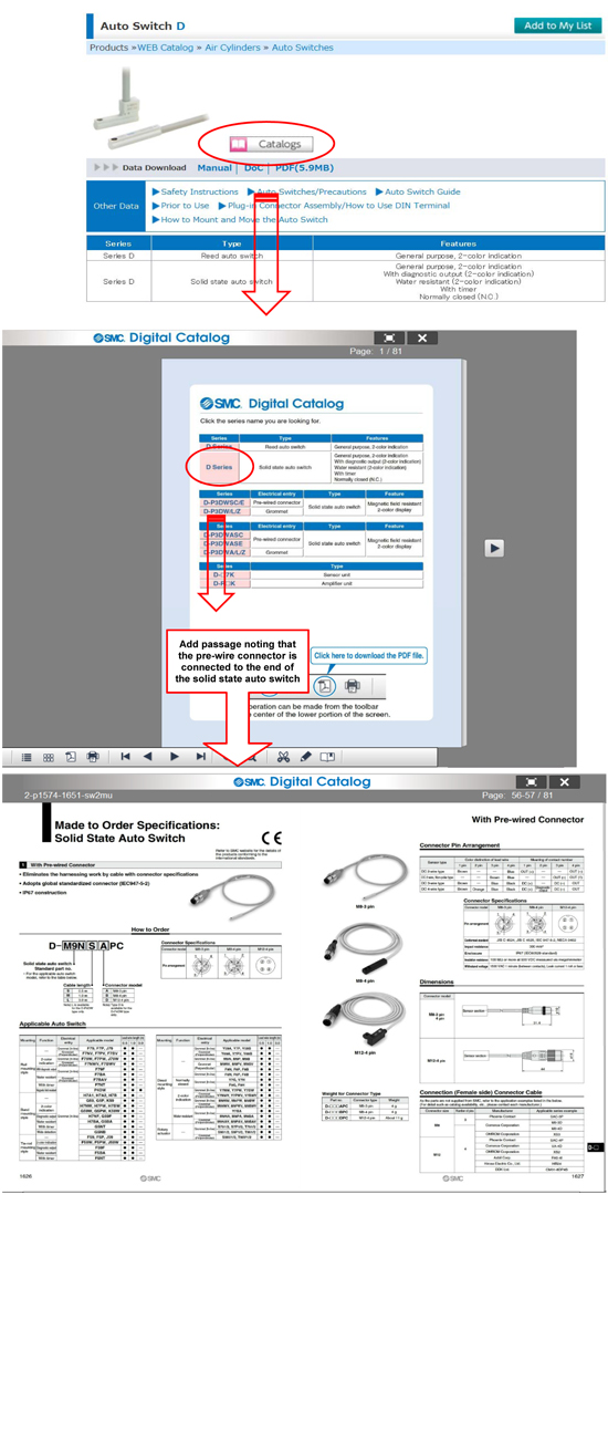 产品目录的定制规格中记载了“带预置连接器”,请参阅产品目录。目录中的无接点磁性开关产品为标准产品。有接点磁性开关需要特别订购。