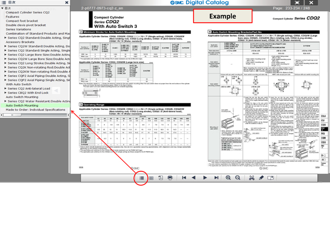 产品目录的各气缸系列的末尾都登载了“磁性开关安装”。其中记载了磁性开关安装件的零件货号。