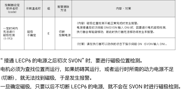 “接通LECP6的电源之后首次SVON”时,要进行磁极位置检测。