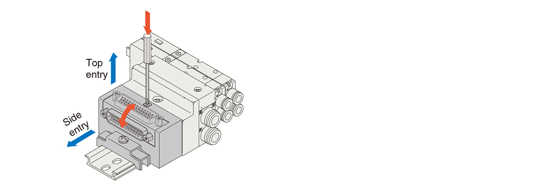 The connector entry direction can be changed from the top to the side by simply pressing the manual release button.