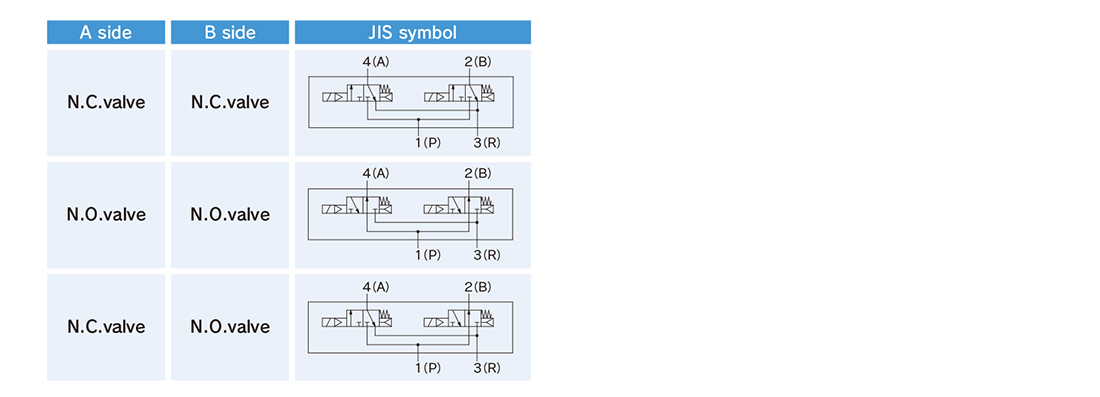 ・The 3-port valves on the A and B sides can operate independently.