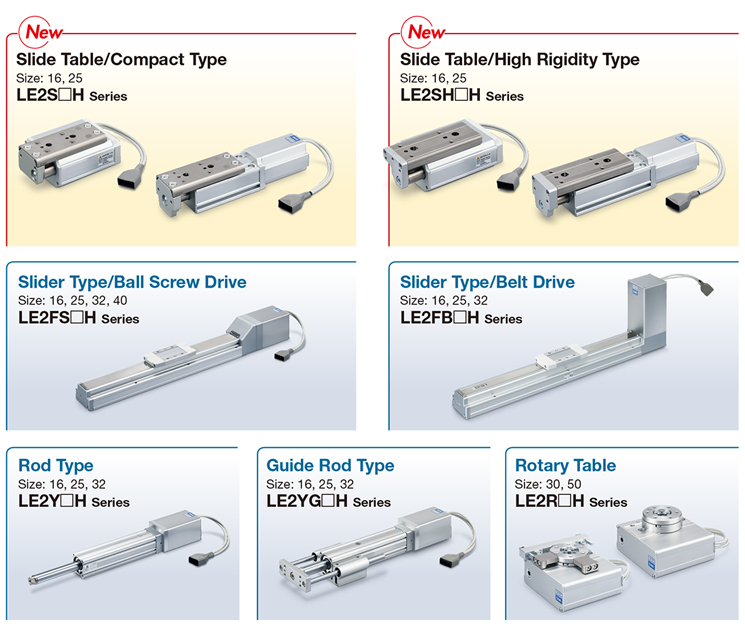 Battery-less absolute (Step motor 24 VDC) | LE2Y16□H | 30 to 300 | Max. 40 | Max. 700 | 2.5,5,10 |