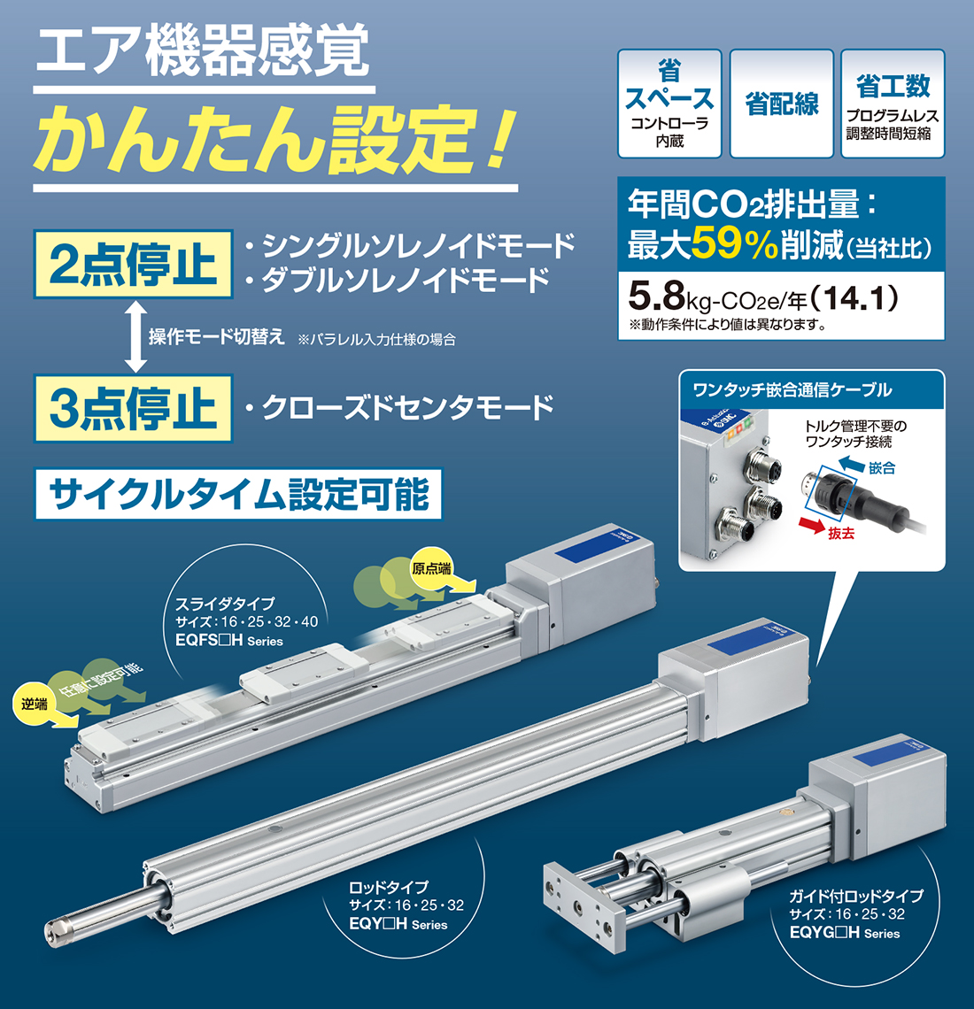 2D CADデータはこちら e-Actuator かんたん制御コントローラ一体型/スライダタイプ EQFS□H
