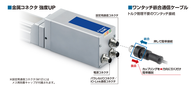 頑丈な金属コネクタと抜き差ししやすい通信ケーブル