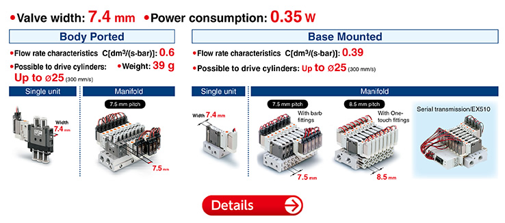 | 系列 | 流量特性 1→4/2(P→A/B) C[dm3/(s・bar)] | 流量特性 1→4/2(P→A/B) b | 流量特性 1→4/2(P→A/B) Cv | 气缸 驱动 尺寸 | 消耗功率(W) |