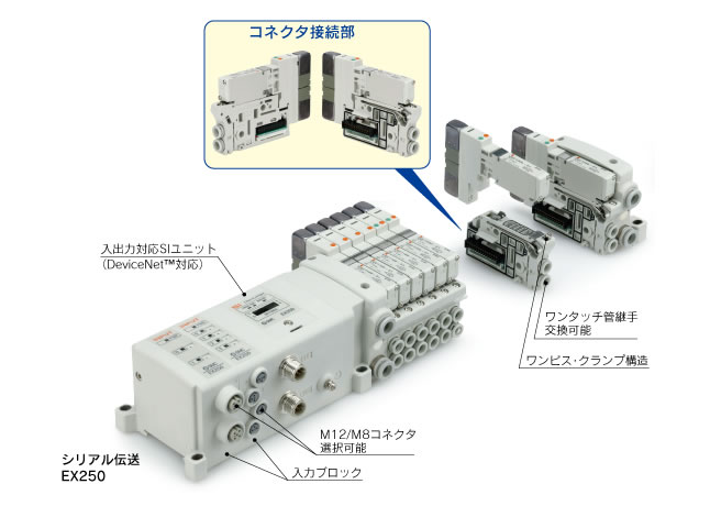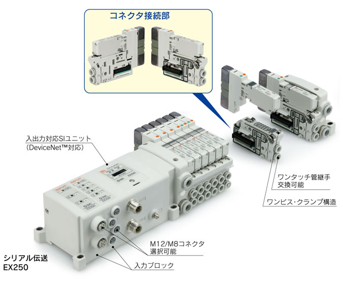・入力ブロックもコネクタ接続方式を採用していますので、マニホールドと同様に連数変更が容易にできます。